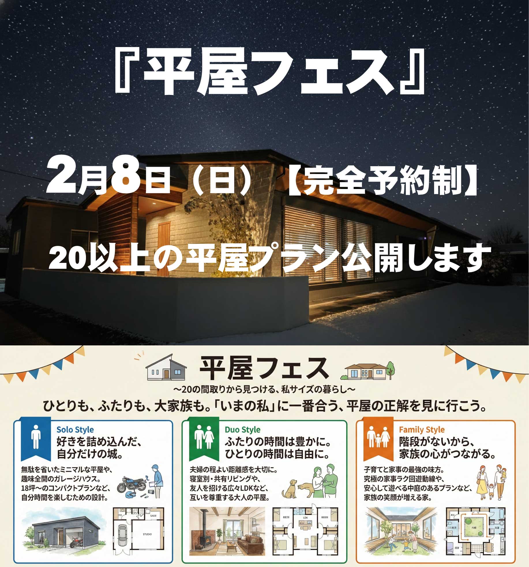 2月8日(日)【平屋フェス開催】20以上の間取り公開