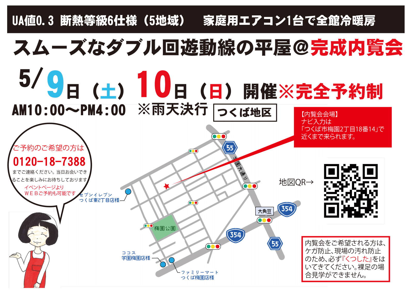 5月9日(土)10日(日)【完成内覧会】『スムーズなダブル回遊動線の平屋』 2026年4月16日 最終更新日時 : 2026年4月16日 suzumoku_admin WEB来場予約 今回の見所 外壁はナチュラルホワイト ダブルの回遊動線 床下エアコン+キッチンカウンタータイプ 玄関から土間収納~キッチンがスムーズ 使いやすいリビング収納 充実の在宅ワークスペース かわいい玄関ニッチ カウンター洗面台がおしゃれ 梁出しLDKで天井高もアップ 南面を活かす奥まった玄関 PDF案内 WEB来場予約フォーム 必須お名前 必須ふりがな 必須メールアドレス 必須電話番号 必須ご住所 必須建築予定地 —以下から選択してください—坂東市常総市境町五霞町八千代町古河市結城市下妻市筑西市つくば市つくばみらい市守谷市取手市牛久市龍ヶ崎市土浦市かすみがうら市阿見町美浦村その他(未定) 必須ご希望の日時 5月9日(土)5月10日(日) お申し込みについてプライバシーポリシーに同意して申込みます ↓お電話でのご予約↓ 0120-18-7388 受付時間:9:00 - 18:00