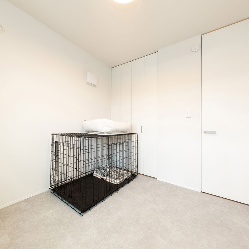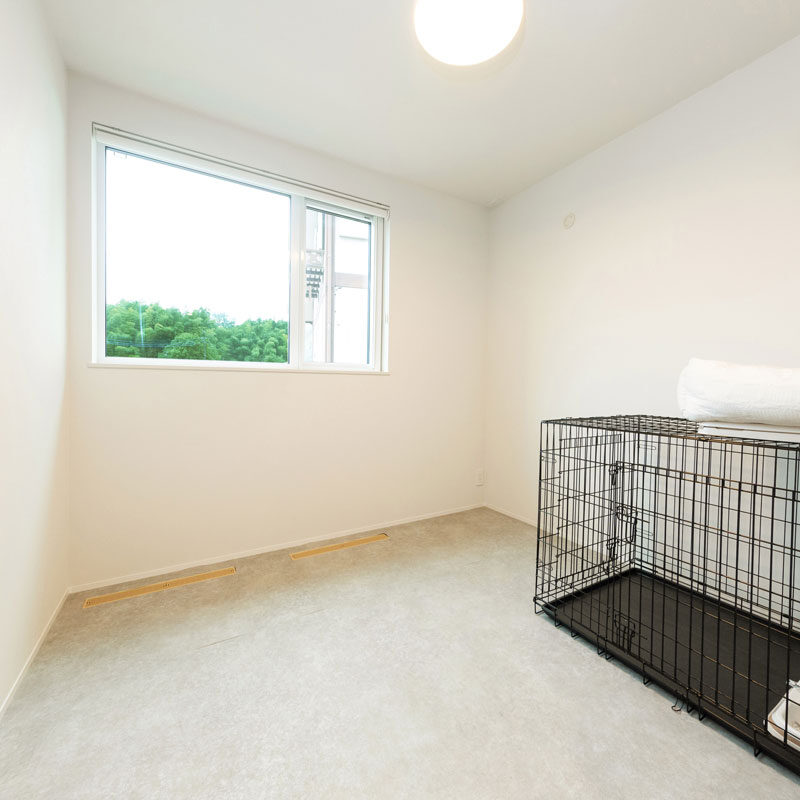 高性能住宅の考え方に沿い、窓は必要最小限に。トイレやバスルームにも設けていません。「窓の少なさ」は、インテリアを考える上で好条件となりました。「窓が多いと、テレビや家具の配置に自由がなくなるんですよね」。開放的で洗練されたインテリアは、最新住宅ならではの窓計画があってこそ。「この家が大好き。カフェが好きなのですが、今はお店に行かなくて済んでいます」と奥様。「ドッグカフェだしね」とご主人が返し、笑い合いました。