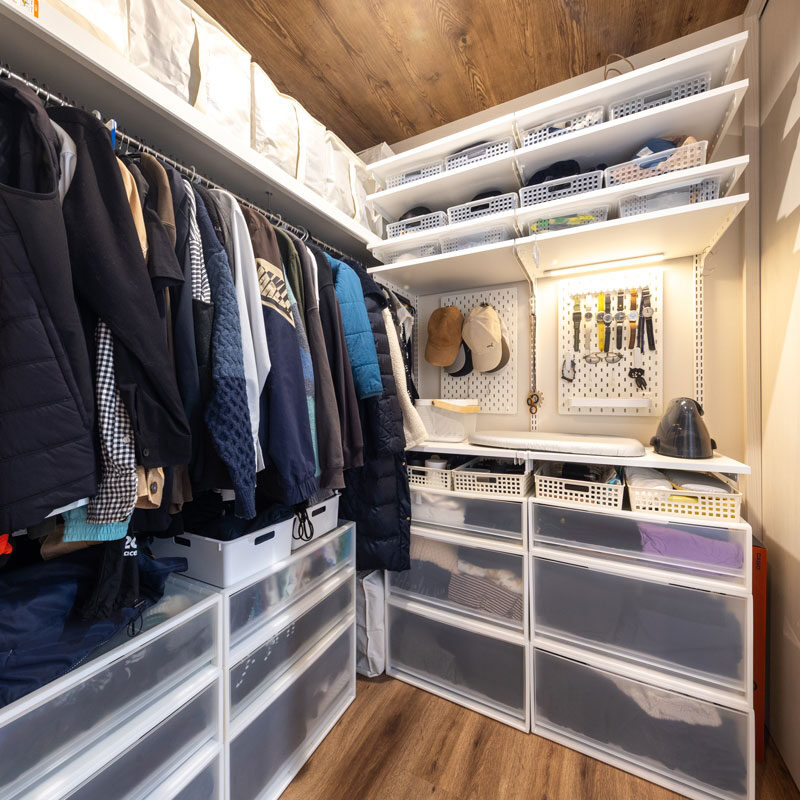 5年の歳月が流れ、H様邸は少しずつ変わりました。ご主人のためのワークスペースは奥様とご長男のものとなり、子ども部屋は、おばあちゃんになった猫ちゃんの部屋に。たくさんつくった収納やディスプレイ棚は、思い出の物でいっぱいになり、悩んでは手放し、また増えていく――。そんな積み重ねが家の歴史になっています。